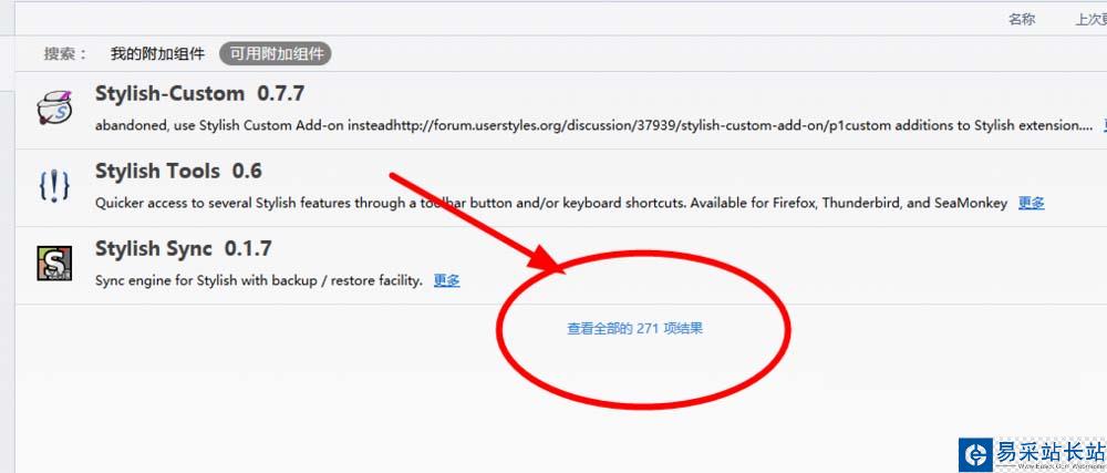 3、搜索之后可能出現的結果并不很多,這時我們點擊查看全部的結果,在新出現的網頁中找到Stylish,并添加。