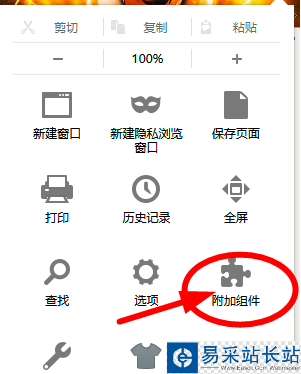 1、點擊瀏覽器右上方的打開菜單,點擊打開菜單后,在出現的對話框中點擊附加組件