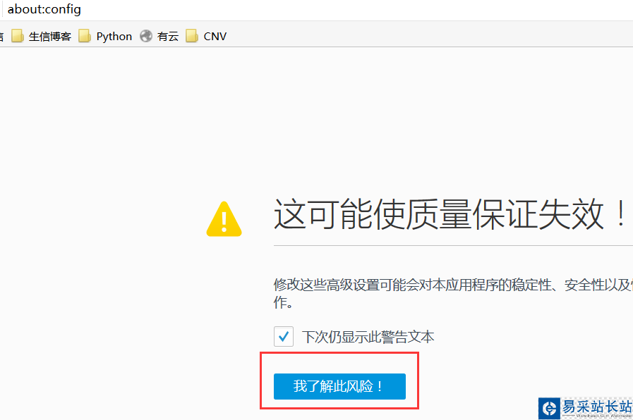 2、在Firefox地址欄輸入“about:config”,然后打開;