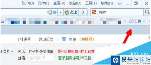 1、打開搜狗高速瀏覽器,在瀏覽器的右上角,找到“工具”的選項。