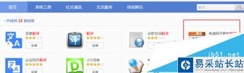 4、搜索結果出現了,下邊是全部關于翻譯的工具,找到上邊的“有道網頁智能翻譯”