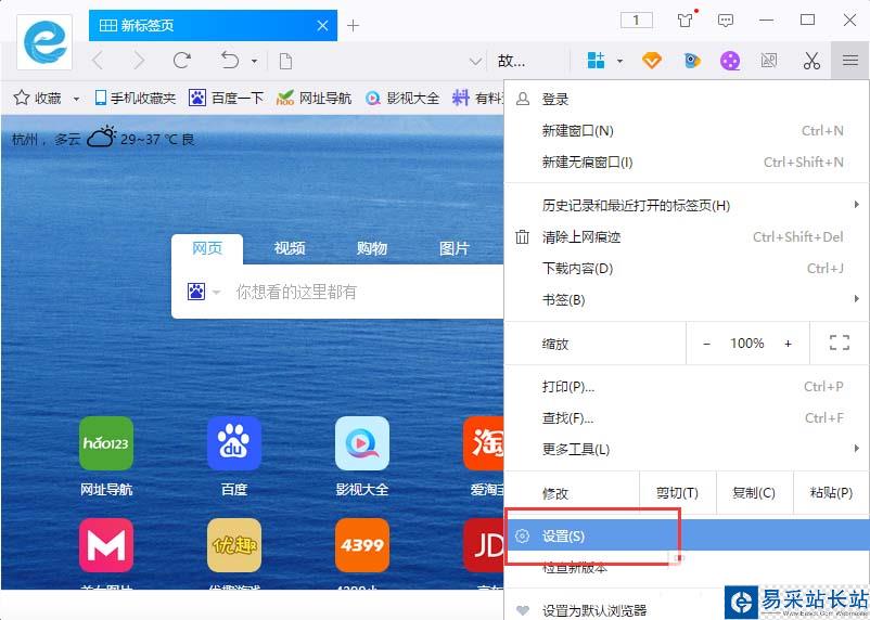 4、點(diǎn)擊設(shè)置選項(xiàng)后,這個時候會跳轉(zhuǎn)到瀏覽器設(shè)置頁面。如圖所示;