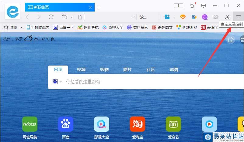 2、打開瀏覽器后,點(diǎn)擊右上角的“三橫”菜單管理選項(xiàng)按鈕。如圖所示;