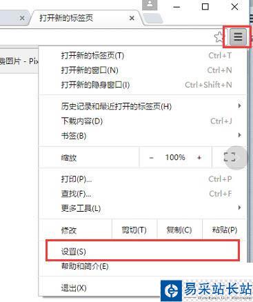 2、打開chrome瀏覽器,如下圖所示,依次點擊自定義控制菜單>>設置按鈕。