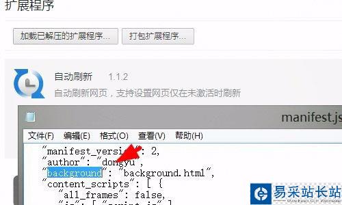 7、大家可以將記事本中的"background_page": "background.html",找到,然后將其中的‘_page’標識刪除,這樣一來就能解決這個故障了!