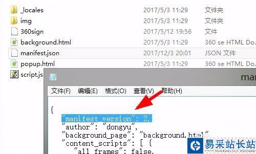 5、打開之后將下面的代碼復制粘貼進入:"manifest_version": 2,