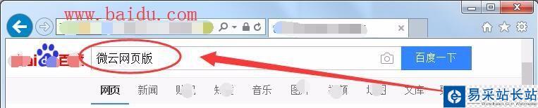 1、打開百度網(wǎng)站,在搜索欄中輸入微云網(wǎng)頁版。