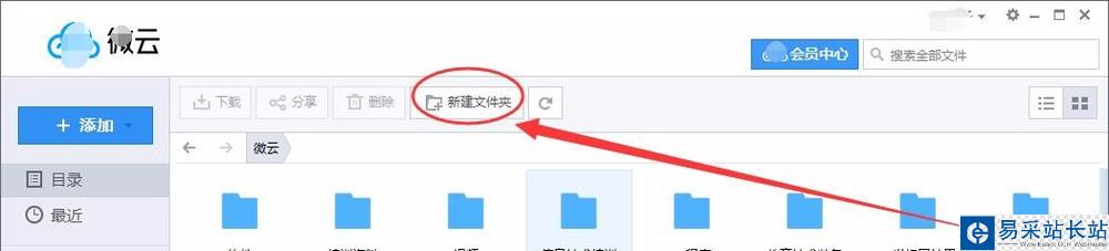 2、點擊新建文件夾按鈕,可以在微云中創(chuàng)建文件夾。