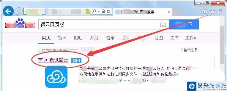 2、搜索區(qū)中,找到騰訊微云官網(wǎng),點擊進入。