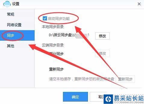 2、單擊左側(cè)的同步選項,選中啟動同步功能前的復(fù)選框。