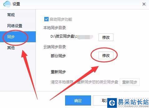 3、單擊修改按鈕,可以更改同步文件的目錄,單擊確定。