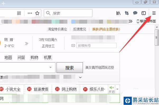 2、進入默認首頁,然后點擊箭頭位置,如圖所示。