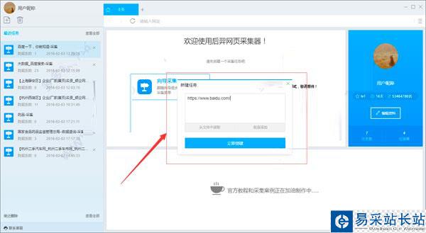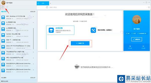 1)啟動后羿采集器,進入主界面,點擊創建任務按鈕創建 "向導采集任務"