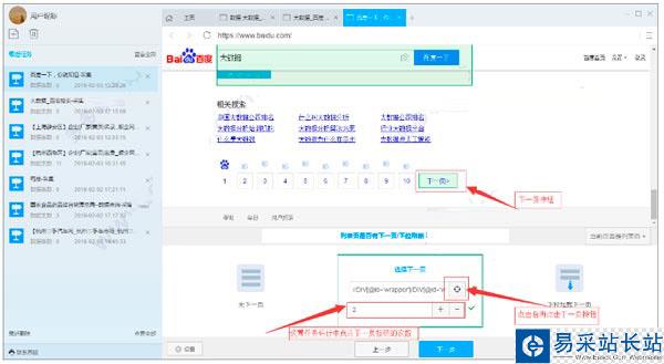 6)選擇下一頁按鈕,選中選擇下一頁選項,然后點擊頁面中的下一頁按鈕填充第一個輸入框,第二個數據框可以調節采集運行中點擊下一頁按鈕的次數。理論上次數越多,采集到的數據越多。點擊下一步
