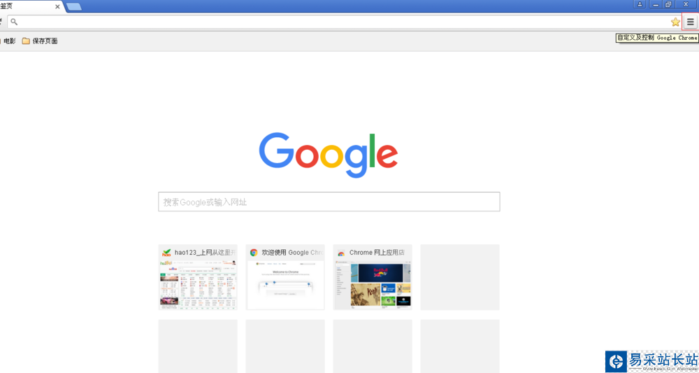 2、鼠標(biāo)移動(dòng)到Google瀏覽器的右上角,會(huì)彈出“自定義及控制Google Chrome”的提示信息。如下圖: