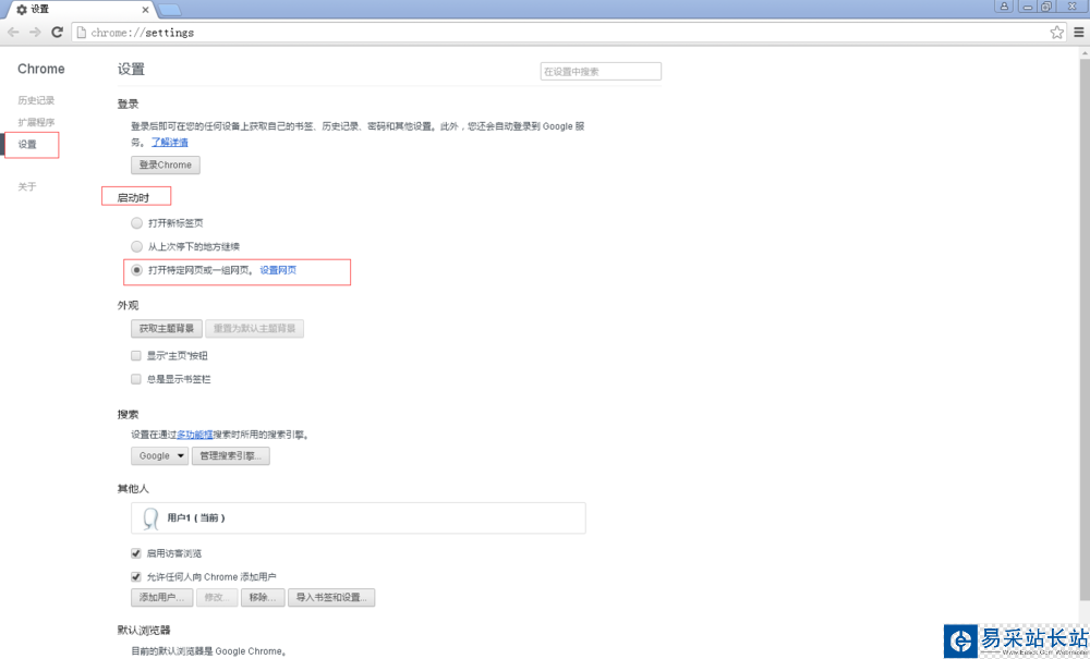 Google瀏覽器安裝完后,默認(rèn)打開(kāi)的為新的標(biāo)簽頁(yè)面,我們可以通過(guò)設(shè)置,讓瀏覽器默認(rèn)打開(kāi)自己喜歡的頁(yè)面,我們還可以通過(guò)以下方法設(shè)置: