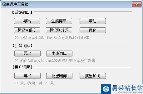 詞庫生成與維護:與詞庫維護相關的功能。如批量加、刪詞、導出用戶詞組、生成詞庫等。
