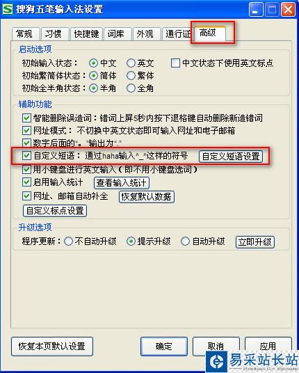 第二步:自定義短語在設置選項的【高級】選項卡中,默認開啟。