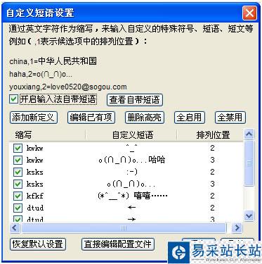 第三步:點擊【自定義短語設置】即可。其界面如圖: