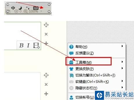 第二步:在百度輸入法面板空白處右鍵----點擊“工具箱”