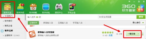 選擇完后找到軟件大全的輸入法分類——找到搜狗輸入法或其他輸入法——點(diǎn)擊一鍵安裝;就可以使用新的輸入法了