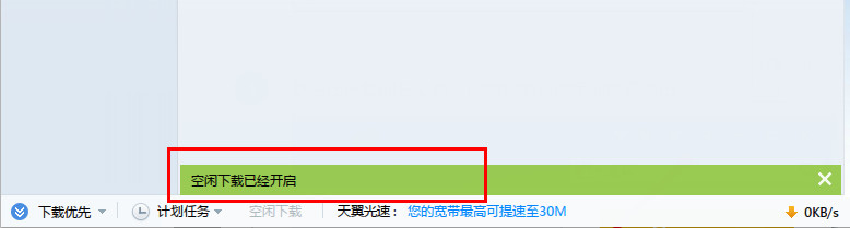 3、然后我們就可以看到迅雷會提示你開啟了空閑下載