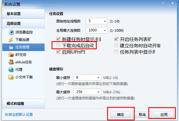 方法二:右上角點擊下拉配置中心==高級設置==任務管理==下載完成后自動關機