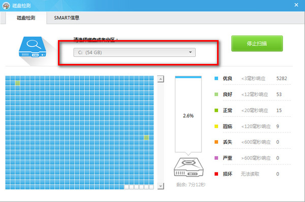 4、掃描完成后,點(diǎn)擊查看SMART信息,所有的磁盤問(wèn)題都會(huì)顯示