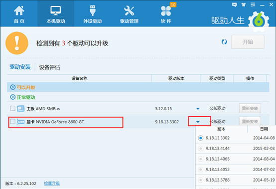 如果你的電腦是在升級之后出現的該情況,請在驅動人生的驅動管理板塊,將顯卡驅動進行還原操作。