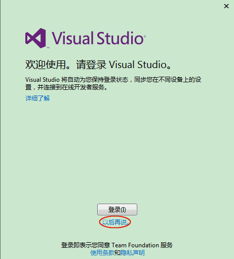 6、第一次打開可能需要進行一些基本配置,如開發(fā)設(shè)置、顏色主題,根據(jù)自己的需求設(shè)置,然后等待幾分鐘就可以使用。由于VS2013引入了一種聯(lián)網(wǎng) IDE 體驗,大家可以使用微軟的賬戶登錄,而且其還自動采用聯(lián)網(wǎng) IDE 體驗的設(shè)備上同步設(shè)置,包括快捷鍵、Visual Studio 外觀(主題、字體等)各種類別同步的設(shè)置