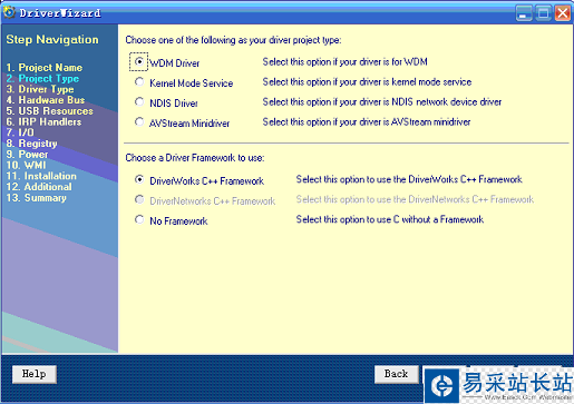 由于DriveStudio由幾個部分組成,我們寫這個驅動程序只要用到DriverWork。在這里,我們假定讀者已經正確安裝了DriverWorks,并且已經編譯了各個庫文件(見本博客前面介紹內容)。