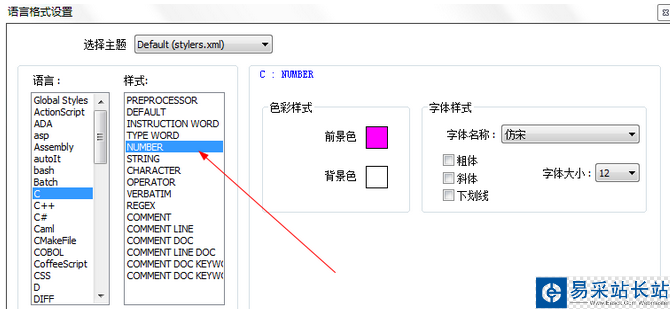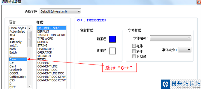 3、設(shè)置預(yù)編譯字體格式。接著上一步驟,我們在“樣式”的那一欄中選擇“PREPROCESSOR”表明我們要對預(yù)編譯字體進(jìn)行設(shè)置,具體操作情況如下圖所示
