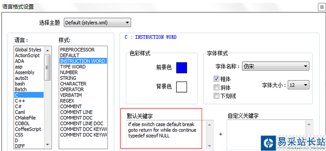 5、設(shè)置關(guān)鍵字字體格式。接著上一步驟,我們在“樣式”的那一欄中選擇“INSTRUCTION WORD”表明我們要對關(guān)鍵字字體進(jìn)行設(shè)置,具體操作情況如下圖所示
