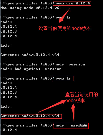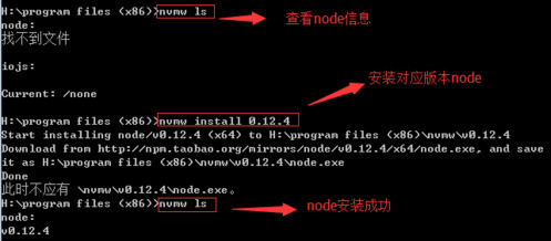 在cmd控制臺輸入:node -v,控制臺將打印出:v0.12.4,出現版本提示表示安裝成功。該引導步驟會將node.exe文件安裝到H:/program files (x86)/nodejs目錄下,并將該目錄添加進PATH環境變量。