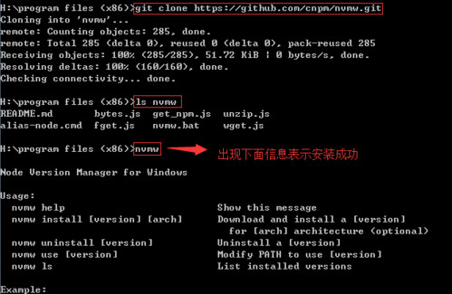 1.1.1、直接從 github clone nvmw 到本地, 這里我使用目錄是H:/program files (x86)/ 目錄存放 git 項目。