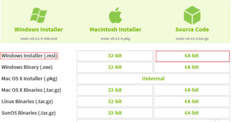 到官網https://nodejs.org/download/下載對應環境的安裝包。下載完成之后,雙擊"node-v0.12.4-x64.msi",開始安裝nodejs,自定義安裝在H:/program files (x86)/nodejs下面。