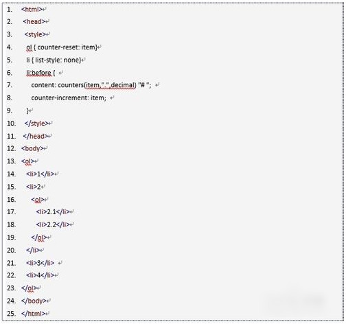 通過content 屬性來改變列表的編號。這里主要介紹其中的counter用法