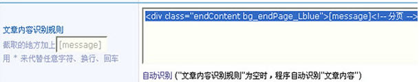 文章內(nèi)容識(shí)別規(guī)則:和列表區(qū)域識(shí)別規(guī)則一樣,找文章的第一句話和最后一句話,然后上下找獨(dú)一無二的代碼,填寫在圖9的位置。文章內(nèi)容使用 [message] 替換。