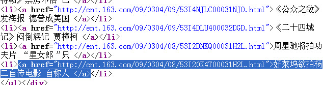 以采集: http://ent.163.com/special/00031HA4/morenews_02.html 為例。