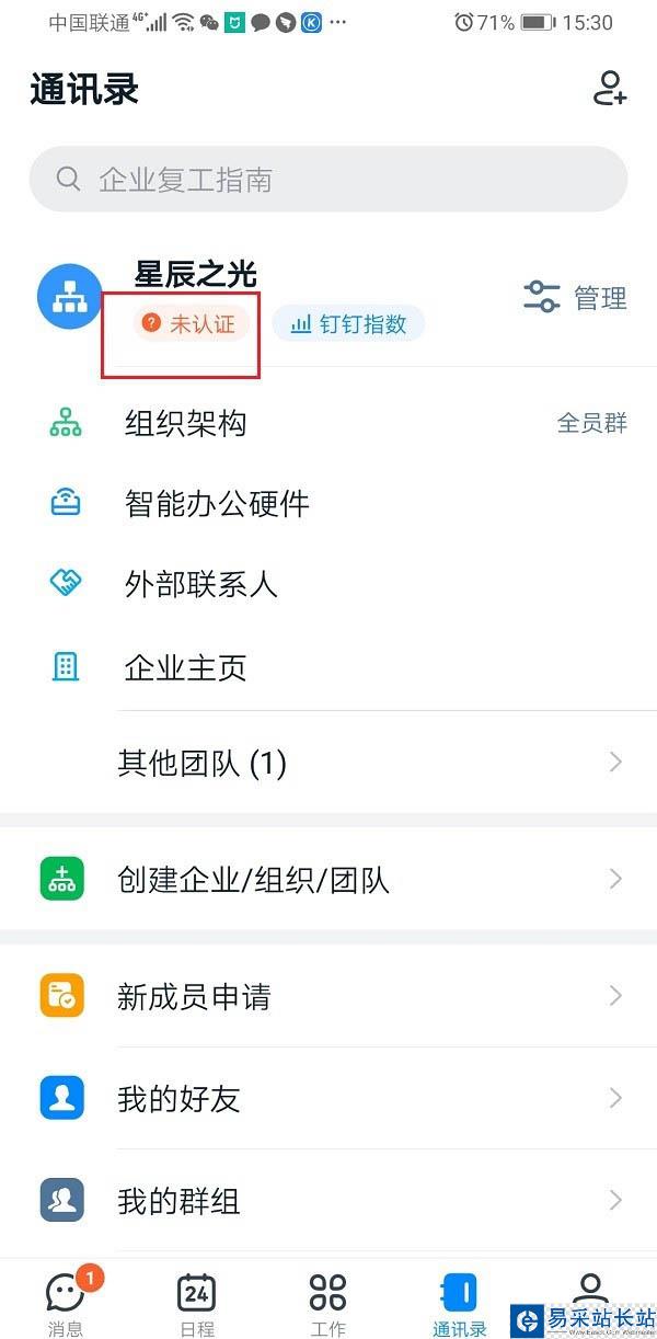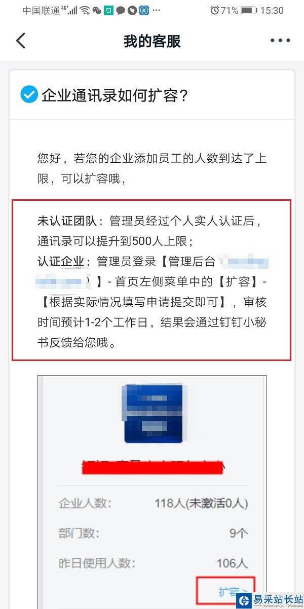 1、我們首先需要知道釘釘企業如果沒有認證的話,認證企業可以將通訊錄擴容到500人,如下圖所示: