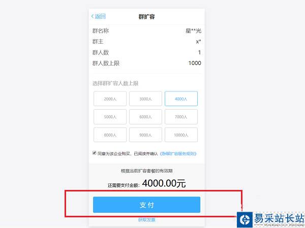5、進去之后,選擇增加的群人數,點擊支付,支付完成之后,就成功增加群人數了