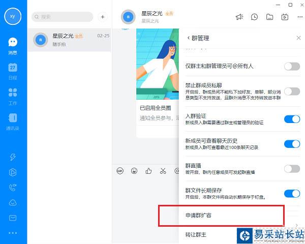 1、需要知道的是目前只支持在電腦版釘釘上擴容群,打開電腦版釘釘,進去群聊,點擊三點圖標