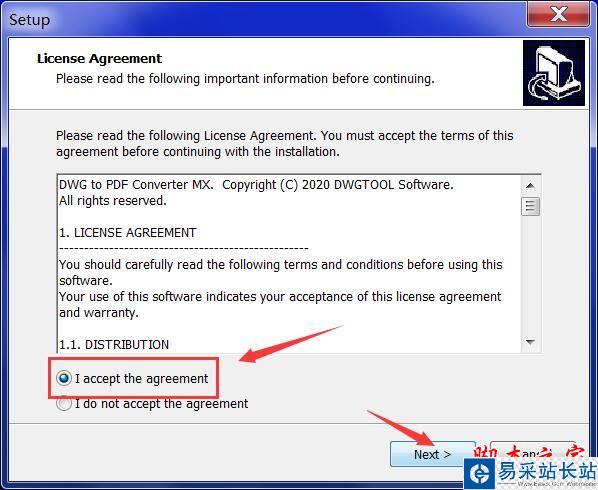 2、選擇"I accept the agreement"點(diǎn)擊next