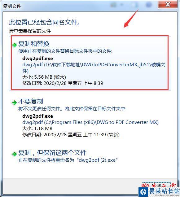 8、將軟件包內(nèi)的破解文件夾里dwg2pdf.exe粘貼到軟件安裝目錄里(默認(rèn)C:/Program Files (x86)/DWG to PDF Converter MX)