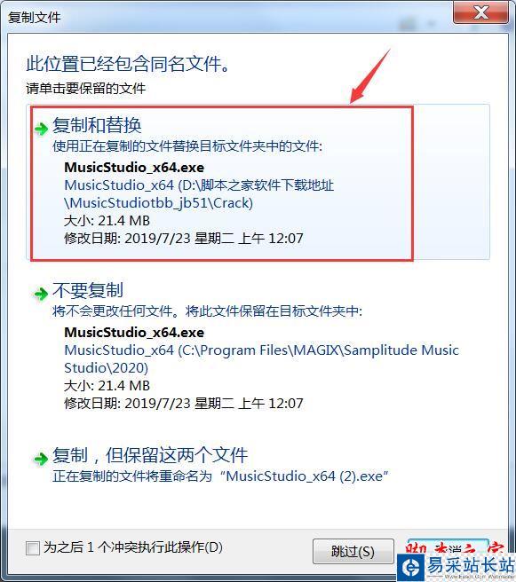 5、不要運(yùn)行軟件,將軟件包內(nèi)Crack文件夾里的兩個文件粘貼到軟件安裝目錄里(默認(rèn)C;/Program Files/MAGIX/Samplitude Music Studio/2020)