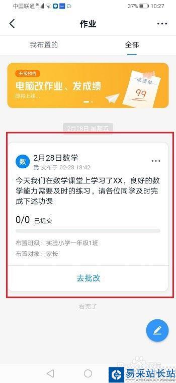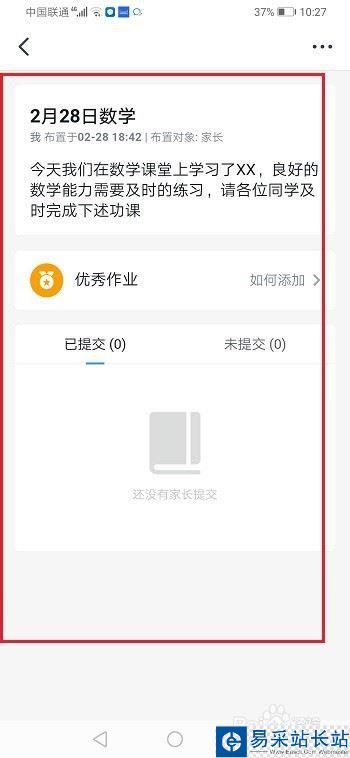 第四步進去家校本之后,可以看到老師布置的作業,如下圖所示: