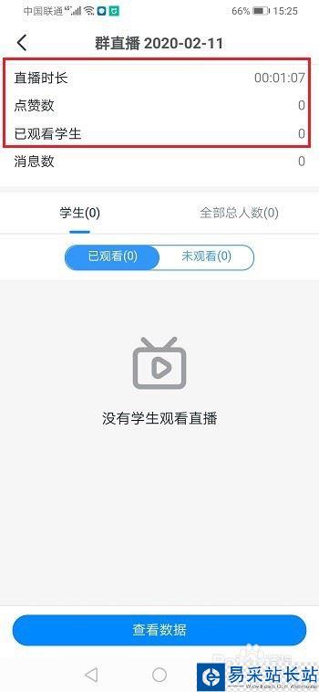 第五步進(jìn)去直播數(shù)據(jù)界面,可以看到直播時(shí)長和觀看人數(shù),如下圖所示: