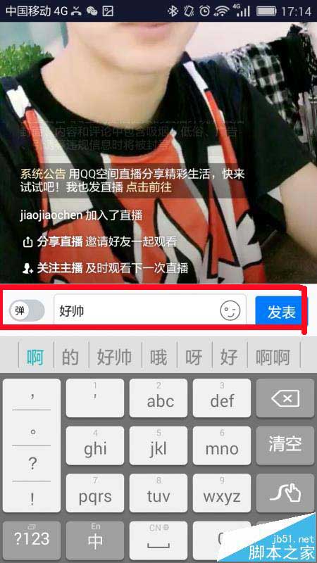 以上就是qq空間直播發(fā)送彈幕的教程,不會(huì)的朋友可以留言,我們會(huì)繼續(xù)幫您解答,喜歡的朋友轉(zhuǎn)載請(qǐng)注明文章來源武林網(wǎng),謝謝支持。