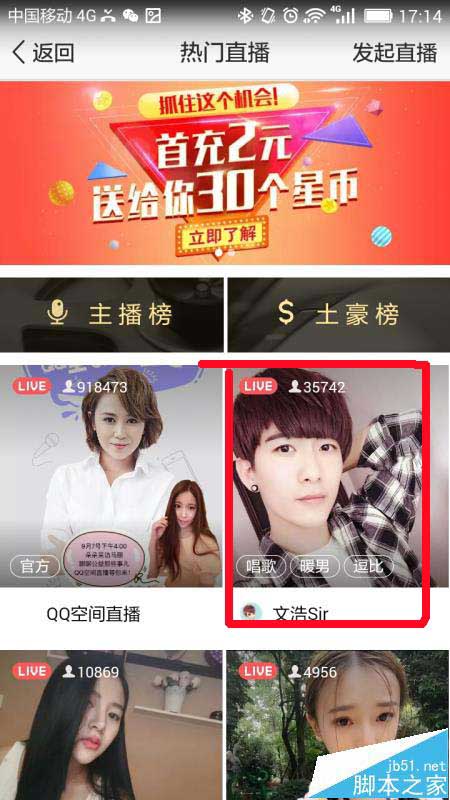 2、進(jìn)去以后可以看到上面有一個(gè)提示多少位主播在直播,找到自己喜歡的那位主播,點(diǎn)擊進(jìn)去觀看,可以看到很多人在發(fā)彈幕,如下圖所示。