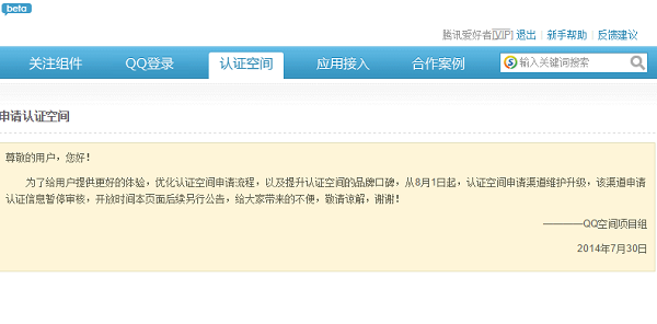 認證空間也會不定時的會發放申請,例如今年4月份,空間認證就已經可以申請認證了,隔了幾天 現在已經關了 。當時的公告是: